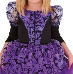 Tento fialovo-černý kostým čarodějnice je skvělou volbou pro všechny holčičky, které chtějí na Halloween nebo kostýmové akce vypadat kouzelně. Šaty mají pohodlnou, ale elegantní nadýchanou sukni a originální netopýří vzor, který zaujme každého.