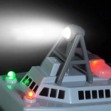 Záchranná loď je také vybavena světly, což ji činí ideální pro hry za šera. Tento set obsahuje loď, dálkové ovládání, nabíječku, a dobíjecí baterii. Hračka je vyrobena z odolného plastu, který zajišťuje dlouhou životnost.