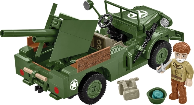Model vyniká precizním zpracováním detailů, včetně speciálně navrženého dílku, který věrně napodobuje charakteristickou mřížku nákladních vozidel GMC. Model poskytuje místo pro řidiče a pasažéra, s kostičkovým kanónem umístěným na korbě. Sada obsahuje unikátní figurku vojáka americké armády, který přidává na autentičnosti a hravosti modelu, doplněnou o drobné příslušenství, jako je vybavení a puška.