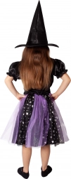 Černo‑fialové šaty zdobené stříbrnými hvězdičkami zaručí, že bude vaše malá čarodějka středem pozornosti na každé párty.