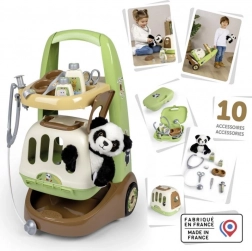 Smoby veterinární vozík s pandou přináší dětem od 3 let autentickou hru na veterináře. Díky chytrému řešení 2v1 slouží praktický box jako přepravka pro zvířátka i jako samostatný pojízdný lékařský kufřík. Vozík má kolečka s lehkým chodem, takže se snadno řídí i menším dětem, a přitom nabízí dost prostoru pro uložení veškerého vybavení.