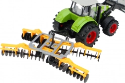 Traktor s diskovým podmítačem a čelním nakladačem je mnohostranná hračka, která zaujme svým intenzivním zeleným vzhledem a láká k dlouhému hraní. Vyrobený z kvalitních materiálů, zajišťuje trvanlivost a odolnost.