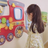 Interaktivní vláček na zeď promění každý pokoj v hravé vzdělávací centrum. Tři samostatné panely se snadno montují na stěnu a šetří místo, zatímco pestré barvy a hmatové prvky lákají k objevování. Děti si procvičí úchop, koordinaci oko–ruka i vnímání příčin a následků, a to vše bezpečně díky preciznímu dřevěnému zpracování a netoxickým barvám.