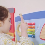 Hudební xylofon probouzí smysl pro rytmus, zatímco korálkový labyrint a žlábek pro korálky procvičují úchop, koordinaci a soustředění.