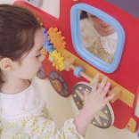 Červená lokomotiva zaujme točivými převody a mlýnským kolečkem, které učí děti příčinu a následek. Bezpečné zrcátko podporuje vizuální vnímání a sebepoznání.