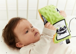 Texturované látky, vystouplé tečky a měkké prvky povzbuzují hmat a motivují dítě k uchopení, mačkání a zkoumání.
