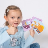 Součástí balení jsou návrhy aktivit: hledání dvojic, napodobování zvuků, malování podle karet i vyprávění příběhů pro rozvoj fantazie.