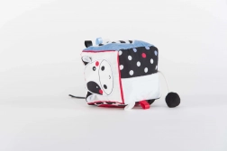 Kravské uši, tygří ocásek a štítky lákají k uchopení a mačkání, což posiluje úchop a jemnou motoriku.