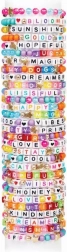 Sada zahrnuje písmena, kulaté korálky a hvězdné tvary, všechny v řadě živých barev pro personalizované šperky.