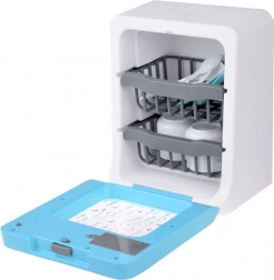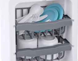 Tato dětská myčka přináší do hry realistické prvky: od šumu vody a zvuku proplachu/sterilizace až po signalizaci ukončení programu. Díky dotykovému panelu si malí pomocníci snadno zvolí režim i čas. Otevírací dvířka a dvouúrovňové koše umožňují pohodlné vkládání talířků, hrnků a příborů.