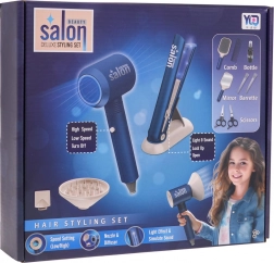 Tento bohatě vybavený kadeřnický set v modré barvě nabídne dětem hodiny zábavy a fantazie. Hlavní hvězdou je susžka na baterie s výměnnými nástavci, která skutečně fouká a zní jako opravdová. Prosťejnovací žehlička svítí a vydává realistické zvuky, takže hraní na salon krásy působí autenticky.