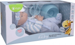 Roztomilé miminko v modrém overalu o velikosti 40 cm potěší každé dítě. Součástí balení jsou praktické doplňky pro hraní na pečování – nočník, misky s příborem a dudlík. Ideální pro rozvoj fantazie a pečovatelských dovedností.