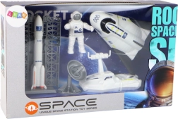 - Raketa se startovací základnou, vesmírná loď, figurka astronauta, mini satelit, vesmírný skútr, originální balení
