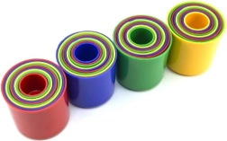 Stohovací kelímky tvoří klasickou vzdělávací hračku, se kterou si děti procvičí přesnost pohybů a pochopí principy velikostí. Každý kelímek má jiný rozměr a barvu, takže lze stavět vysokou věž nebo je skládat do sebe a trénovat logiku i trpělivost.