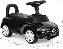 Stylové dětské odrážedlo s licencí MERCEDES přináší realistický zážitek z jízdy už od 12 měsíců. Nabízí bezpečnou a stabilní konstrukci, interaktivní volant se zvuky klaksonu a startu motoru, praktický úložný prostor pod sedadlem a ochranu proti převrácení. Maximální nosnost je 25 kg.