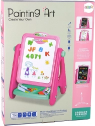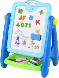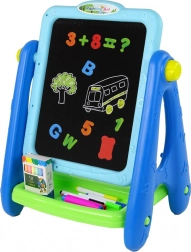 Tato praktická vzdělávací tabule nabízí dvě učební plochy: bílou stranu pro psaní mazacími fixy a připínání papírů a černou magnetickou křídovou stranu pro psaní křídou jako ve škole. Děti se zábavnou formou učí psát, počítat a tvořit slova, rozvíjejí jemnou motoriku i představivost.