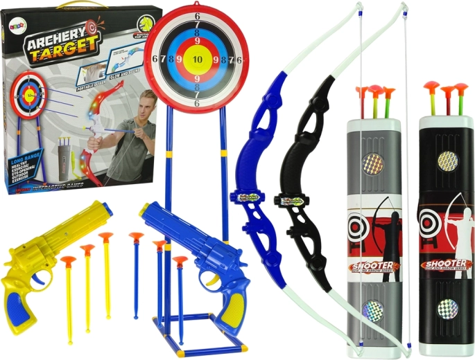 Kromě luků zahrnuje také dva hravé pistole se šipkami, které mohou být použity pro cílovou střelbu nebo zábavné hry s přáteli a rodinou. Barevné kombinace vzbuzují pozornost a motivují k hře.