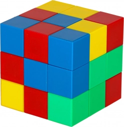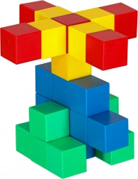 Hra s kostkami umožňuje volné experimentování a tvorbu barevných tvarů, což rozvíjí prostorovou představivost a kreativitu dítěte.