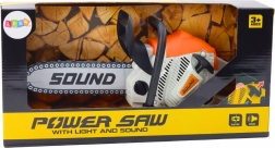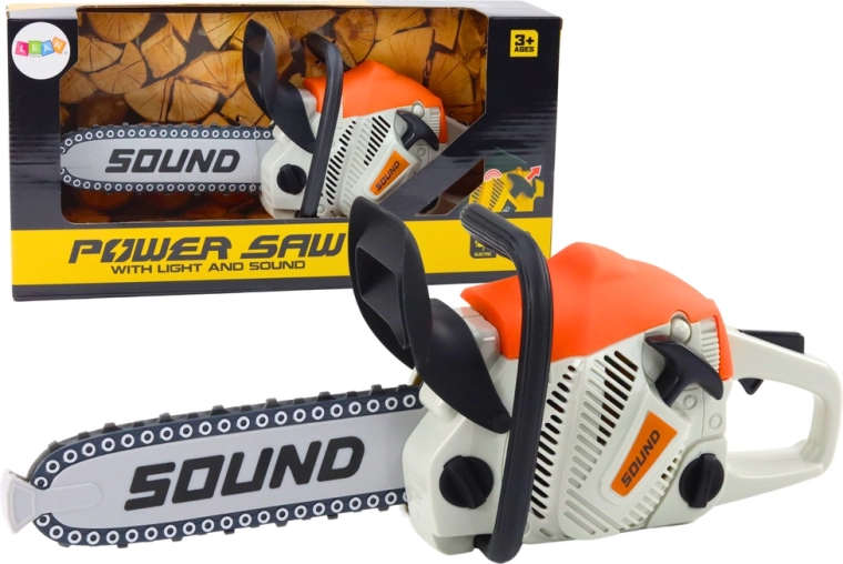 Dětská motorová řetězová pila s pohyblivým řetězem a zvuky