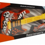 Objevte zábavnou elektrickou kytaru spolu s mikrofonem, dokonale navržené pro malé hudební nadšence. Tato kytara je vyrobena z kvalitního plastu a přichází v zářivě červeno-žlutém provedení. Kytaru zdobí stylové světelné efekty a interaktivní tlačítka, která umožňují snadné ovládání různých písní a zvuků.