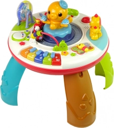 Stolek je vybaven klaviaturou s melodiemi, otočnými postavičkami a osvětlenými tlačítky ve tvaru zvířátek, které po stisknutí vydávají veselé zvuky a světelné efekty. Plastový stolek je navržen tak, aby snadno přitahoval pozornost dítěte.