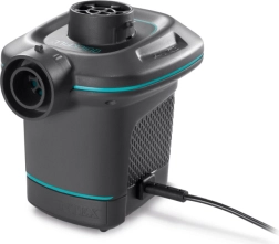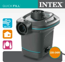 Praktická elektrická pumpa Intex Quick-Fill pro rychlé nafukování i vyfukování matrací, bazénů a hraček. Nabízí výkonný průtok až 650 l/min, 3 univerzální nástavce, napájení ze sítě 220–240 V a ochranu proti přehřátí pro bezpečný provoz.