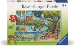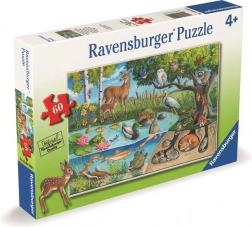 S tímto puzzle od Ravensburger zažijí děti spoustu zábavy, ale zároveň se procvičí ve svých dovednostech. Ilustrace od Ingrid Slyder představuje barevný svět lesního rybníka, kde se nacházejí různé druhy zvířat – ptáci, jeleni, sovy, mývalové, veverky, ryby a želvy. Pod povrchem navíc odhaluje zajímavé životy králíků v norách a odpočívající lišku.