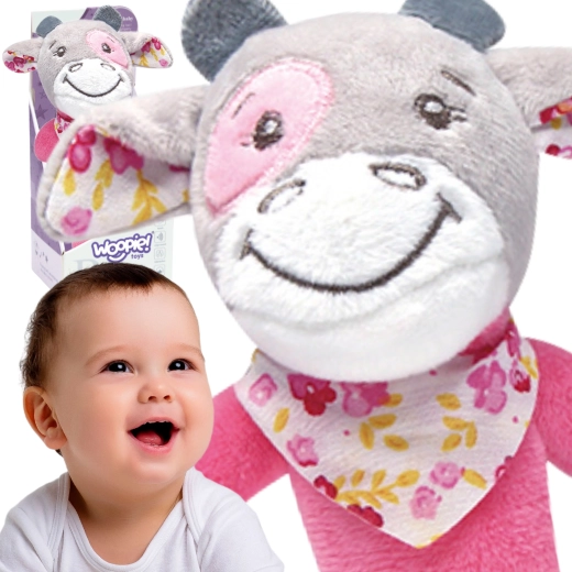 Plyšová kravička Woopie přináší miminku uklidňující dotek hebkého materiálu a zároveň podněcuje objevování zvuků i textur. Po stisknutí držátka hračka vydá výrazný zvuk pískátka, šusticí část zase láká k prozkoumávání prsty a ušima. Ideální pro první uchopování, mačkání a hru doma i na cestách.
