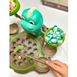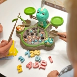 Hračka zahrnuje rotující talíř, váhu a chytání dinosaurů, což zajistí hodiny zábavy a učení.