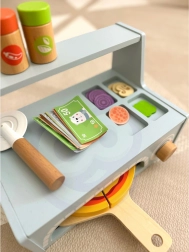 Tento krásný set obsahuje dřevěnou pec na pizzu, která promění hraní v realistický kulinářský zážitek.