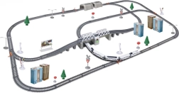 Dlouhá dráha, tunel, budovy, stromy, lampy a značky vytvářejí poutavé prostředí pro rozvoj fantazie a příběhové hry.