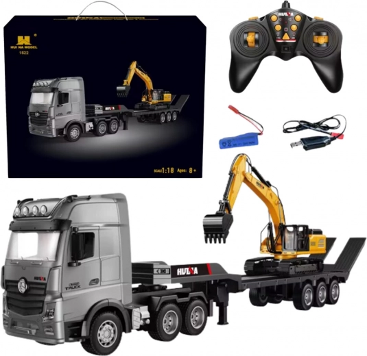 Zamilujte si tento realistický model zdalně řízeného nákladního vozu s přívěsem a bagrem v měřítku 1:18, který je navržen pro nadšence stavebních vozidel. Sada je vybavena 9-kanálovým ovládáním, které umožňuje plnou kontrolu nad vozidlem, včetně jízdy vpřed, vzad a zatáčení, což realisticky simuluje skutečné přepravní úkony. Přívěs je navíc vybaven funkcí zvedání a spouštění, což umožňuje precizní nakládání a vykládání bagru.