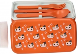 Praktický a roztomilý oranžový lunch box s motivem kočičky je ideální na obědy do práce, školy i na cesty. Součástí jsou integrované příbory – lžíce a vidlička. Pojme porci na celý den, je vhodný do mrazáku a lze jej ohřívat v mikrovlnné troubě bez víčka (max. 100 °C). Kompaktní rozměry 20 × 10,6 × 10 cm usnadňují přenášení v tašce či batohu.