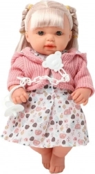 Panenka miminko ve sladkém oblečku je ideální volbou pro děti, které milují hru na rodinu a péči o miminka. Vyznačuje se klasickým vzhledem a pečlivým zpracováním, díky čemuž věrně napodobuje skutečné miminko. Má jemné rysy obličeje, zavřená ústa i oči, což jí dodává klidný a realistický výraz. Blond vlasy spletené do dvou copánků s mašličkami dodávají panence dívčí půvab a přátelský vzhled.