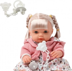 Dalším lákadlem jsou realistické zvukové efekty – panenka vydává zvuky jako smích či pláč, což oživuje a obohacuje hru. Panenka má barevné šatičky a měkký růžový svetřík, který lze sundat, což přidává další možnosti ke kreativní zábavě. Set obsahuje také dudlík na řetízku s přívěskem, díky čemuž se dítě může cítit jako skutečný pečovatel. Vyrobena je z odolného a bezpečného plastu, je lehká, příjemná na dotek a ideální pro každodenní mazlení, péči a společnou zábavu.