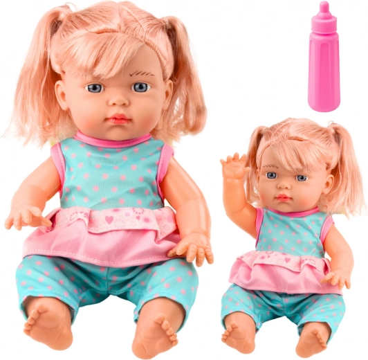 Panenka miminko v tyrkysovém kompletu s lahví a zvukem
