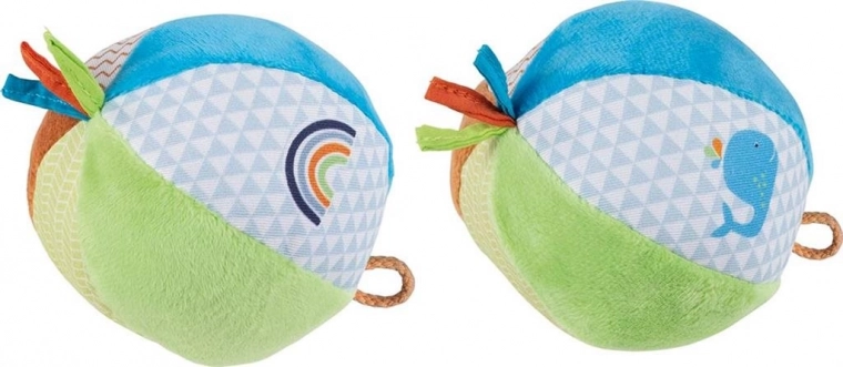 Tento měkký míček je skvělou hračkou pro vaše nejmenší díky své schopnosti nejen bavit, ale také rozvíjet smysly. Je vybaven rolničkou, která podporuje sluchové vnímání, a šustící fólií, která zajišťuje hmatovou stimulaci. Přítomnost poutek a stužek umožňuje dětem zkoumat různé textury, což je výborné pro rozvoj jemné motoriky.
