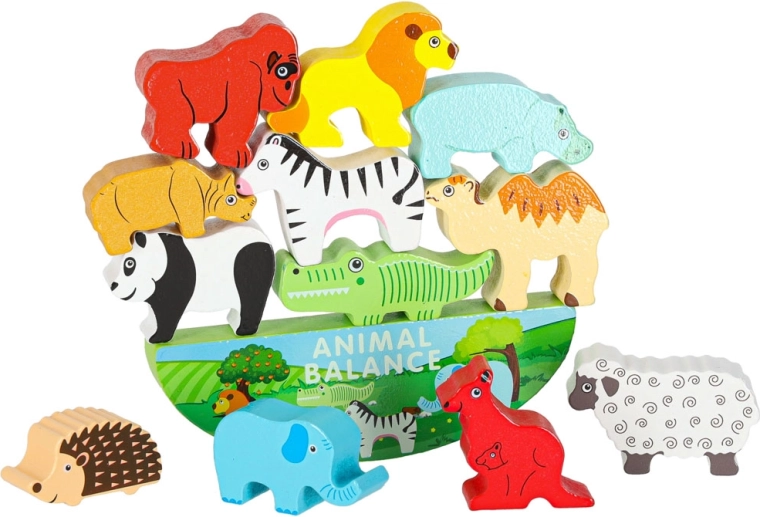 Tato barevná dřevěná balanční hra nadchne každé dítě. Úkolem je pokládat zvířátka jedno na druhé a hledat stabilní kombinace na houpající se základně. Děti si u toho procvičí jemnou motoriku, trpělivost a logické uvažování, zatímco objevují tvary a barvy zvířat ze safari.