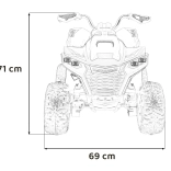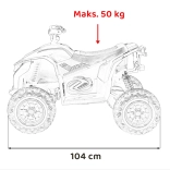 Tato elektrická čtyřkolka je navržena pro zábavu i bezpečí. Výkonný pohon 4×35 W v kombinaci s plynulým startem a dvoustupňovou rychlostí poskytuje jistotu a komfort při jízdě. Díky velkým EVA kolům (31 × 14 cm) a dvojitým zadním tlumičům s regulací zvládne i nerovný terén.