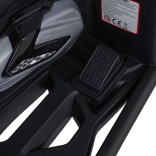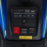 Multimediální panel s Bluetooth, USB, MP3 a FM rádiem nabídne oblíbené melodie i pohádky. Sedadlo z eko kůže s bezpečnostními pásy drží dítě pohodlně a bezpečně. Rodiče mají kontrolu díky dálkovému ovladači 2.4G se 3 rychlostmi a bezpečnostnímu tlačítku Stop.