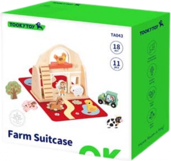 Tooky Toy Dřevěná skládací farma vám přináší farmářské dobrodružství přímo k vašim dveřím! Skládací farma je snadno přenosná a obsahuje 11 vysoce kvalitních dřevěných prvků.