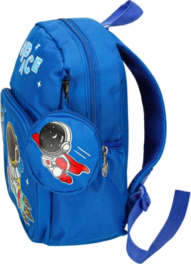 Objevte rozmanité úložné možnosti s tímto dětským batohem. Hlavní velká komora se zapíná na zip a poskytuje dostatek prostoru pro většinu potřeb školkáře. Přední menší kapsa je perfektní na drobnosti nebo svačinu, zatímco okrouhlý sáček v přední části dodává batohu jedinečný vzhled. Po stranách najdete kapsy ideální pro láhev s vodou nebo kapesníky.