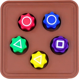 Sada obsahuje 5 barevných kostek, vyrobených technologií 3D tisku z odolného plastu. Každá kostka má jinou výraznou barvu: červenou, modrou, žlutou, zelenou a fialovou, což usnadňuje hru a přitahuje pozornost. Na každé kostce se nacházejí charakteristické symboly (kruh, trojúhelník, čtverec).