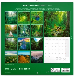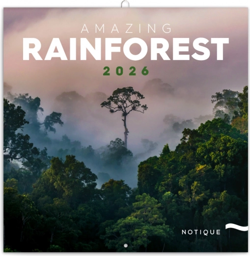 Užijte si dvanáct překrásných fotografií deštných pralesů ve vašem domově. Kalendář nabízí přehledné kalendárium od září 2025 do prosince 2026, měsíční fáze, důležité svátky a prostor pro poznámky na každý den.