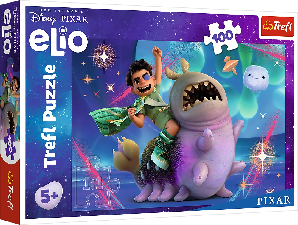 Užijte si stavebnou zábavu s puzzle Elio a vesmírné dobrodružství, které obsahuje 100 dílků a je ideální pro děti i rodinné aktivity.