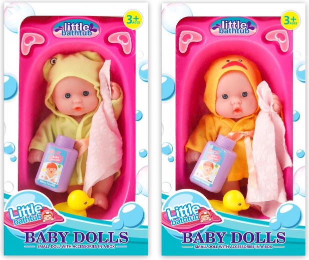 Tento roztomilý set obsahuje miminko oblečené v barevném oblečku, které si můžete vykoupat ve vaničce. Součástí balení jsou variabilní doplňky, díky kterým můžete prozkoumávat mnoho herních variant, včetně motivů žáby a kačenky.