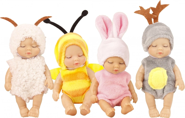 Rozšiřte svou sbírku o toto kouzelné miminko, které je pouze 12 cm vysoké. Každý kousek je pečlivě zpracován s důrazem na detail, včetně barevných oblečků s různými motivy zvířátek. Miminko je ideální pro hru nebo jako dekorativní prvek do dětského pokoje.