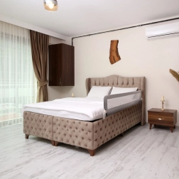 Když zábrana není potřeba, snadno ji složíte pomocí postranních tlačítek, takže nebude vyčnívat nad úroveň matrace. Pevná konstrukce kombinuje odolný kov s vysoce kvalitním plastem, což zajišťuje stabilitu každou noc a odolává i většímu zatížení. Klidný spánek bez obav – pro vás i vaše dítě!