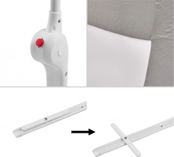Ochranná zábrana na postel poskytuje bezpečnost a ochranu pro děti i dospělé před nechtěným pádem z postele. Je snadno montovatelná díky možnosti zasunutí podložek pod matraci a skládací konstrukce umožňuje snadné složení.