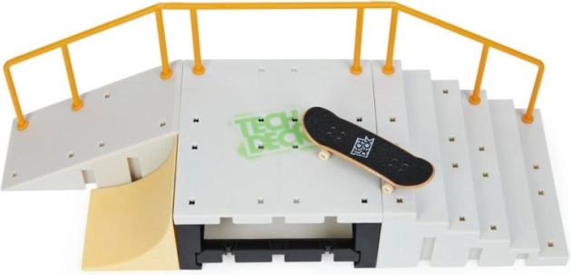 Vytvořte si svojí vlastní verzi skateparku díky Tech Deck XConnect Skatepark! Obsahuje schodiště, rampy, zábradlí a různé překážky pro trénink nových triků s fingerboardem.